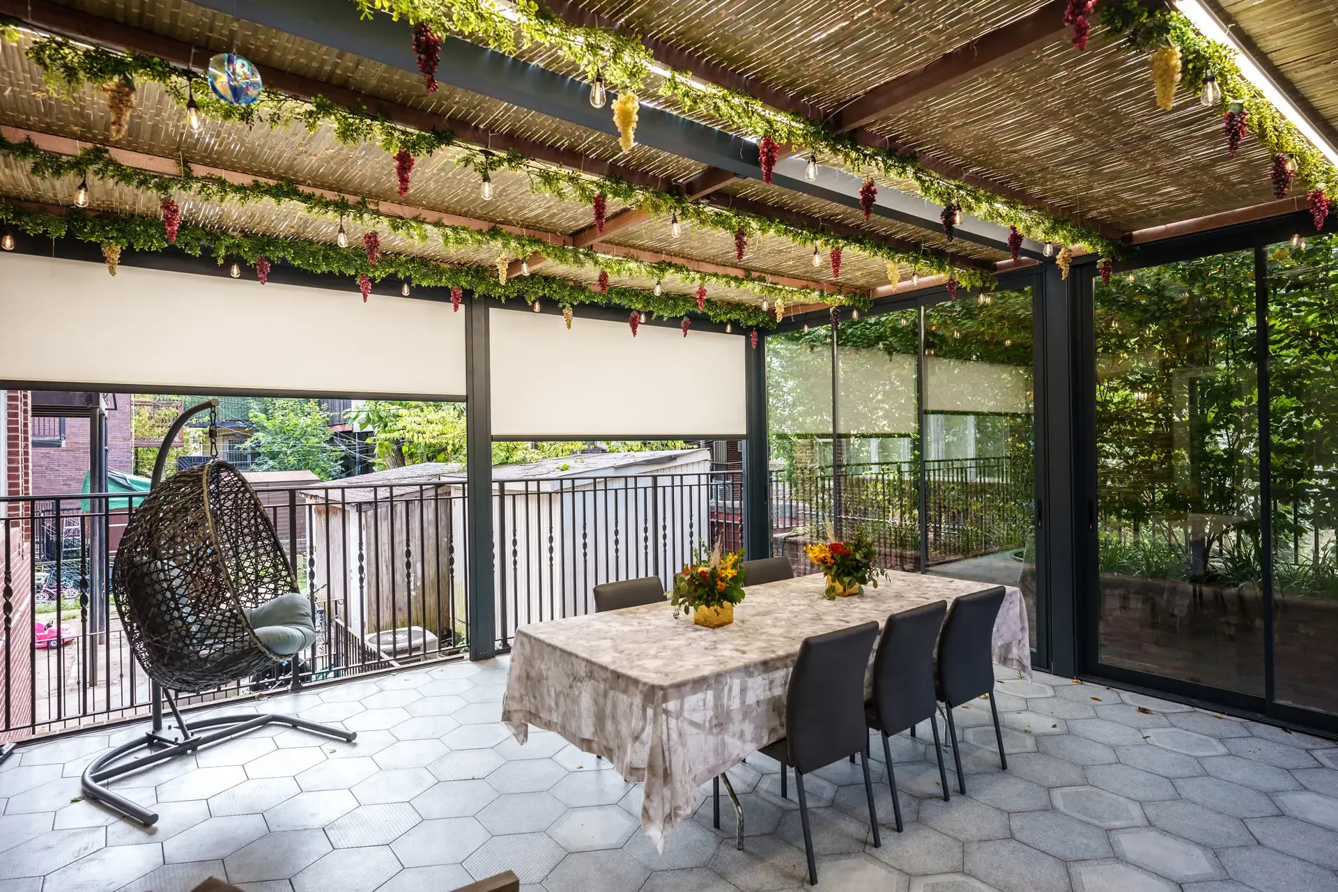 Motorized pergola with a manual option is a superb Sukkah application. The structure does not require installing and taking it down every year. In fact, it provides protection against all elements and extends the use of your outdoor space all year round. The system is Shabbat Friendly and can be linked to smart devices for scheduled/timer triggered automation.